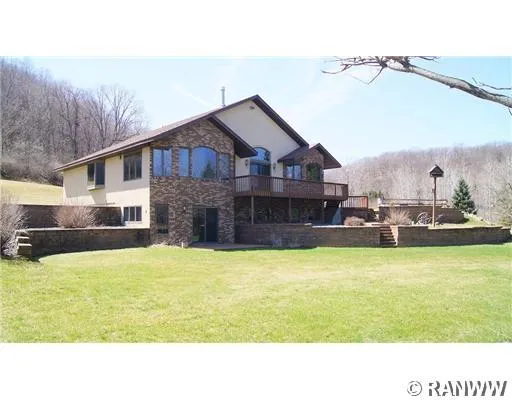 High end home in a valley setting overlooking Elmwood. All living facilities on one level with an oversized 3 car attached garage that is heated. High vaulted ceilings, 2 sided gas fireplace, Jacuzzi master tub, steam shower, fully finished walk out basement with large game room and lots of light. Spring fed trout pond on property. Up to 12 additional acres available.