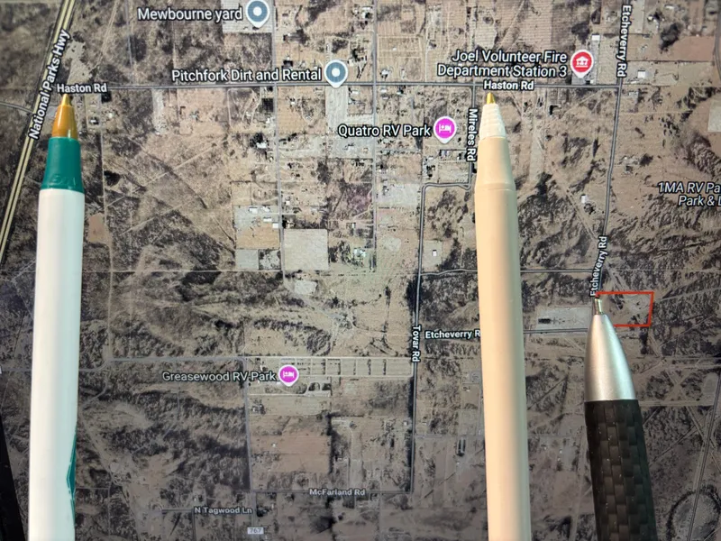 The Id # with the Eddy County assessor and Eddy County treasurer for the 10 acres is R037663---The Otis Water line That brings drinkable water to the property runs along the entire 518.5 feet that joins Etcheverry Road