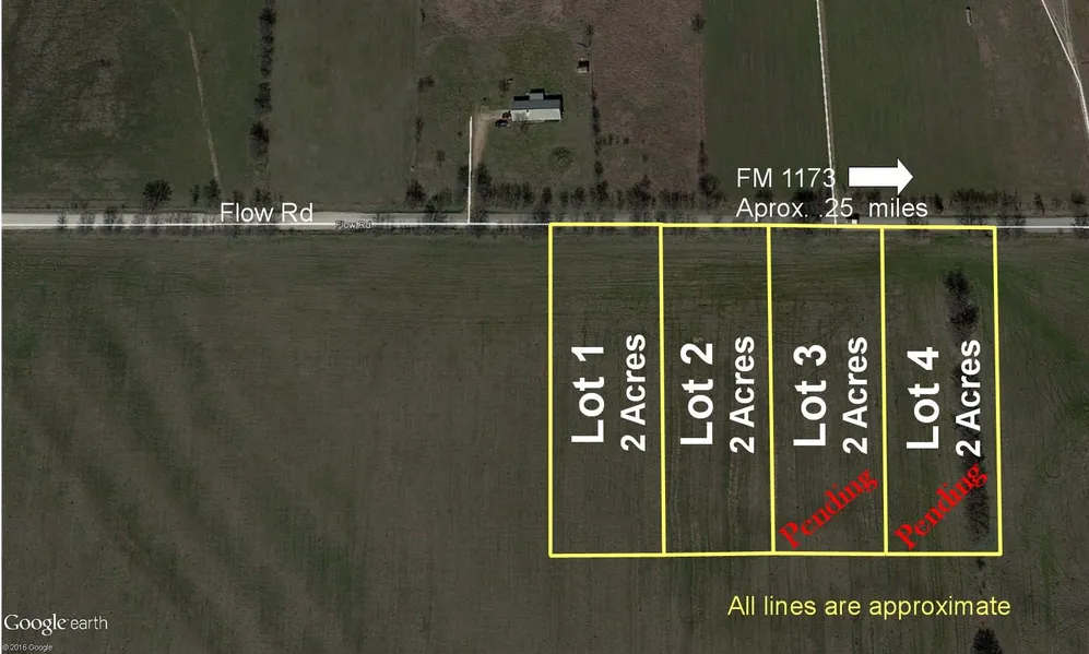 Research Parcel InformationFrom I-35 in Denton take Krum exit FM 1173 going west for approximately 10.5 miles. Road turns going north and Flow Rd is on your left going west. Lot is on the left with sign.