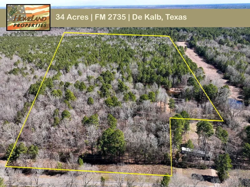 Beautiful 34+/- acres of land with a nice pond located outside of De Kalb, Texas! This property offers a thick canopy of towering pines and mature oaks concealing the attractive rolling topography of the land. This peaceful and serene getaway is the perfect spot for the avid hunter or other nature enthusiast seeking a weekend retreat or hunting camp. As you explore this 34+/- acres you will be awestruck by the abundance of wildlife from whitetail deer, wild hogs, squirrels, owls and more. Unrestricted land with blacktop road frontage! Call us today!
