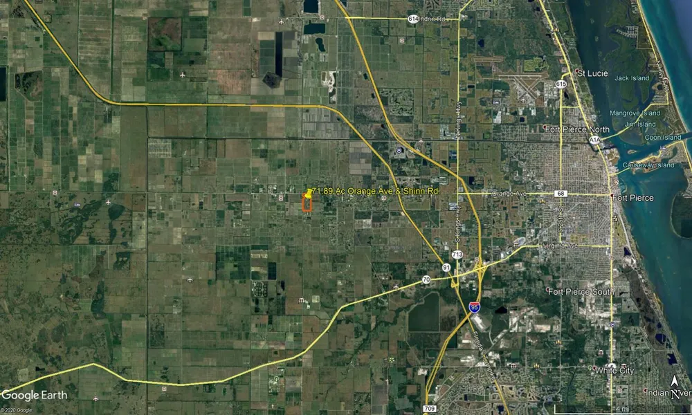 71.89 Acres located only 4.5 miles from I-95 at the corner of heavily traveled Orange Ave. and Shinn Road is ripe for Rural Development. Currently, this 72 +/- acre parcel has AG-1 (1 unit per acre) zoning on the north half, and approximately 1,230 feet of highway frontage on Orange Ave, aka SR 68. The south half has frontage on Shinn Road and is zoned AG-5 (1 unit to 5 acres).