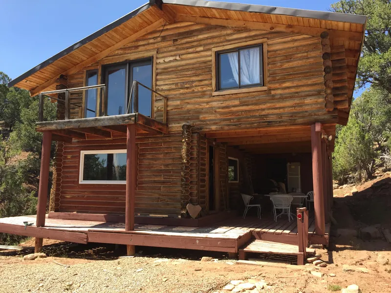 Log Home on the Bandanna Ranch. Home has 3 bedrooms, just under 1500 sq ft. Cabin has city water, power and septic. The access roads are maintained year-a-round. The logs are 8" Swedish cope. Cabin sits in a private cove, with thick pinion-pines and junipers. The log cabin is very appealing to look at, and it has made a great weekend get-away for the current owners. Cabin is rustic, and could use some repairs and upgrades. But the current owners have used the cabin as it is, as a recreational get-away for the last 20 years. And made great memories as the kids grew up. "Cabin will be sold as it is, in its current condition, with no guarantees or warranties what so ever as to the condition of the property" The owners have that they would finance the cabin with a 25% to 30% down payment.