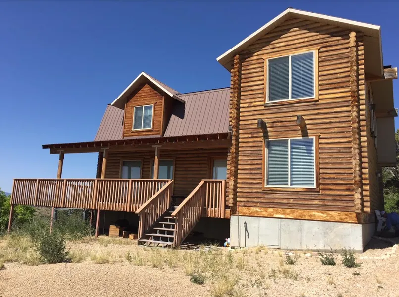 4539-This 2,138 sq ft. log cabin sit nears the back of Bandanna Ranch on just over 11 acres. With 2 stories the cabin has 4 bedrooms and 3 baths, and a large living area. Outside a 3/4 wrap-a-round covered trex deck, awaits you to enjoy the panoramic open view of Tabby Mt. and the valley below. The cabin has power, water, septic, and year-a-round access and comes fully furnished. Featured is a metal roof, carpeted flooring, beautiful log exterior and interior as well, 2 propane fireplaces, one in the master bedroom next to a large jetted bath tub. Perfect for relaxing after a long day. A large ATV shed, storage shed, and a full 6' crawlspace provide for storage beyond what the home offers. Extremely private, this home gives you a wonderful escape from the cares of the world.There is an additional 8 acres adjoining this property that can also be purchased. This home is a absolute must see.