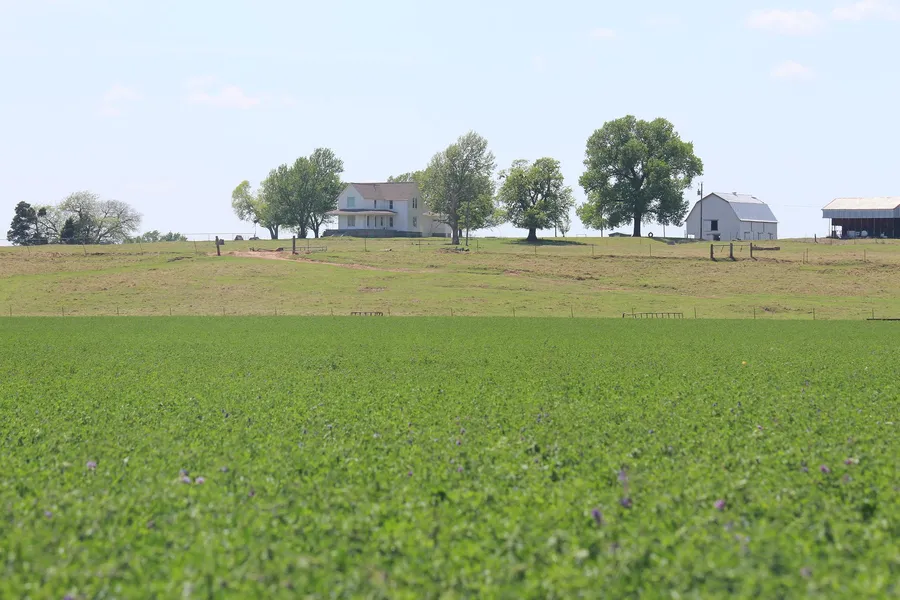 Tract 8: 72 ac along Ladd Ave that include the 2,757 SF Pre-1900 Historic Farm House with an impressive view of the farmland bottoms below to the east. Also included in this parcel are a open sided hay barn, bunk style two story barn, cattle working pens, 7 individually fenced traps, grain storage facilities, two farm labor homes and a domestic well.