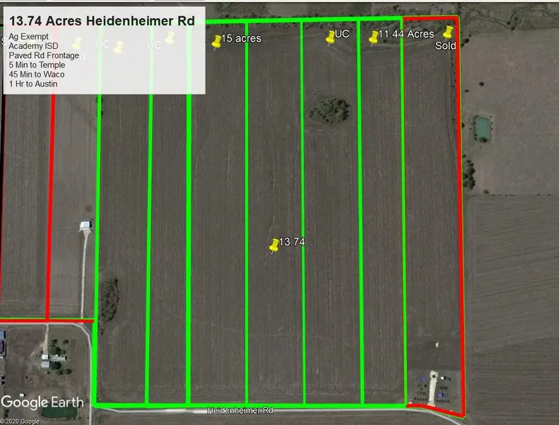 Research Parcel InformationFrom Temple, south on Hwy 36/190, cross Loop 363, left at FM 3117 (Oscar Road) at city limit sign, to FM 3117 for 2.3 miles, right on Heidenheimer Road. All property on west side of Heidenheimer Road.