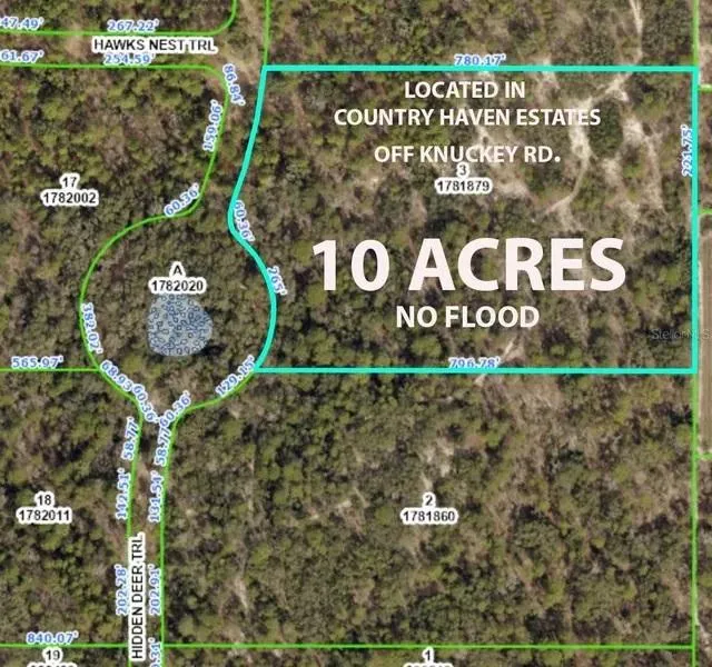 GORGEOUS 10 ACRE PARCEL located in Country Haven Estates off Knuckey Road. PAVED PRIVATE ROADS! ZONED AG...so bring yoru RV, camper, boats, ATVs, horses, and pets - bring it all! NO FLOOD. This beautiful area is a subdivision of 200 acres made into 19 privately owned 10-acre lots. Build your dream home nestled in the trees for complete privacy or clear some pasture land for your horses and animals. There are only 3 deed restrictions to maintain value: (1) Single family site-built homes ONLY; no modulars, no manufactured homes, no mobile homes allowed, (2) 1800 sq ft living space minimum home, (3) No commercial animals (no pig or chicken farms, no dog breeding kennels, etc. There is a POA (Property Owners Association) that was required to be created to maintain the private roads. Each of the 19 lot owners is responsible for 1/19th of the property tax bill on the roads and any maintenance if its needed (fix a pot hole). It was not intended to be an HOA to govern what you do on your land as long as you are within the 3 deed restrictions and you are within any county ordinance/zoning like any other lot/land in the county. The property comes with a survey. Well and septic needed. Some beautiful homes have been built in here are already. Call today to come see it.
