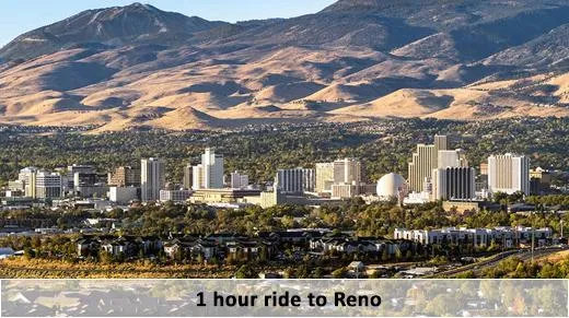 Property is 1h and 20 minute drive from the Reno city and 38 minute from U.S. Route 395 which is a major highway in Nevada.