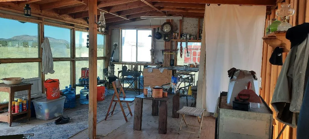 sheds, stock trailer, water storage tanks, wood stoves.