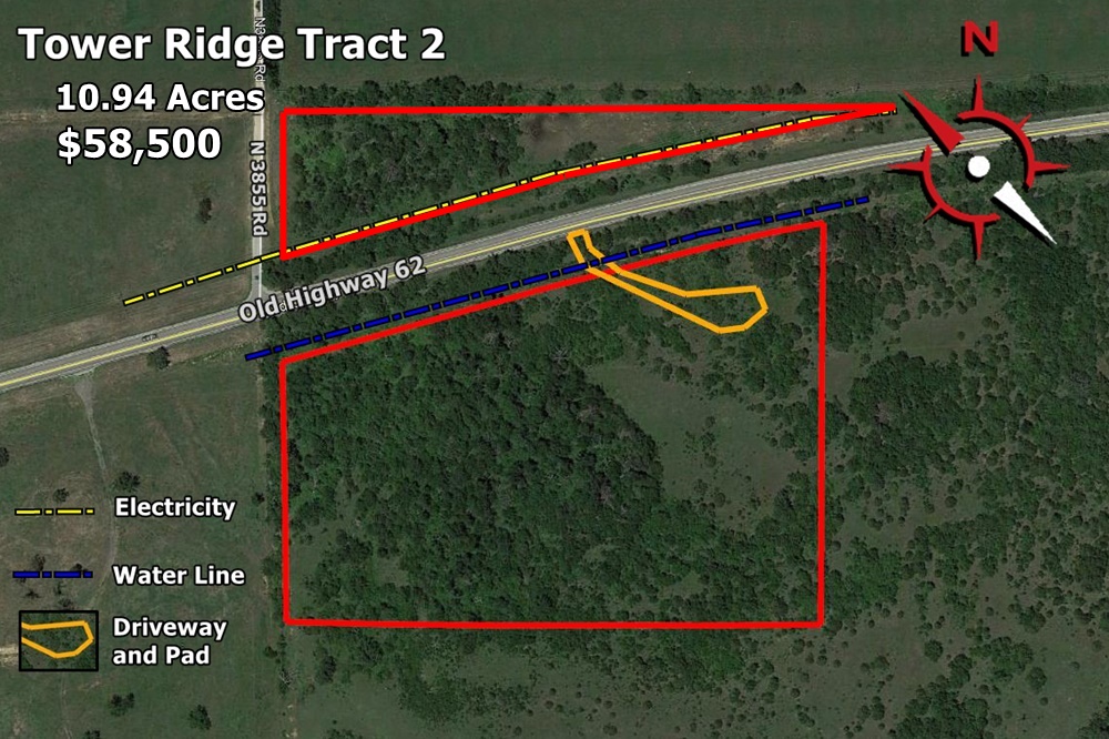 It has water and electricity utilities. Also, access is good as it has frontage along the south side of Old US Highway 62. This land, with rolling terrain, would be a great place to escape the busy city or to build a home site.