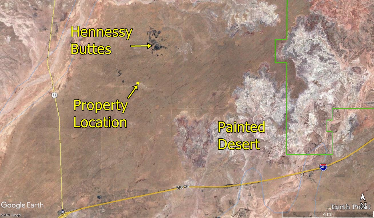 The scenic Hennessy Buttes are less than 2 miles to the north. There's a watering hole about 0.5 mile to the northeast. Sheri Road is about 1.5 miles to the east.