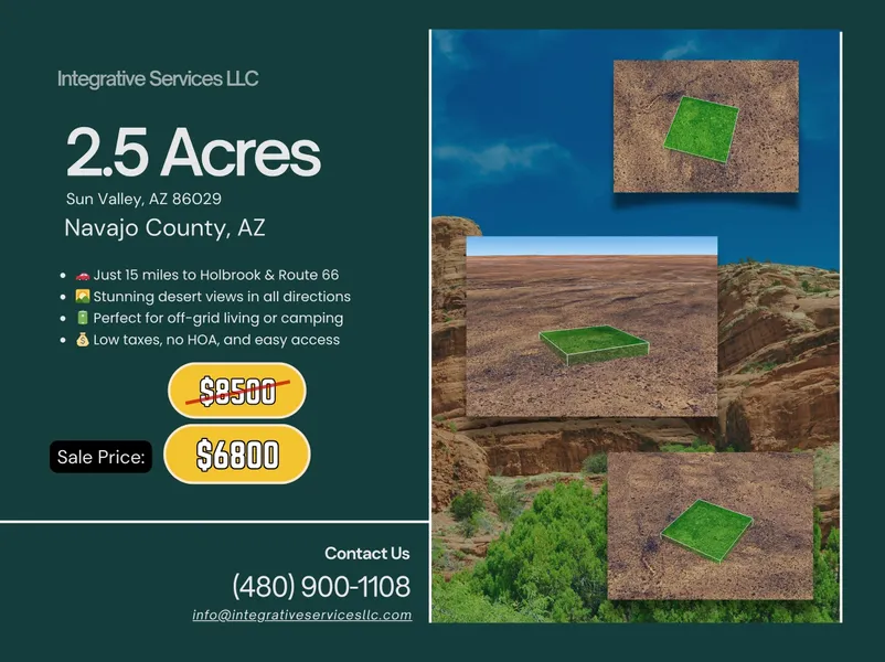 Nestled in the peaceful Rancho 101 subdivision of Sun Valley, this 2.5-acre property offers a rare opportunity to own a wide slice of open desert in Navajo County, AZ. Located just 7 miles north of the Purple Heart Trail (I-40) and a short drive off Route 66, youre tucked away in a serene, rural setting while still being within reach of small-town amenities.
