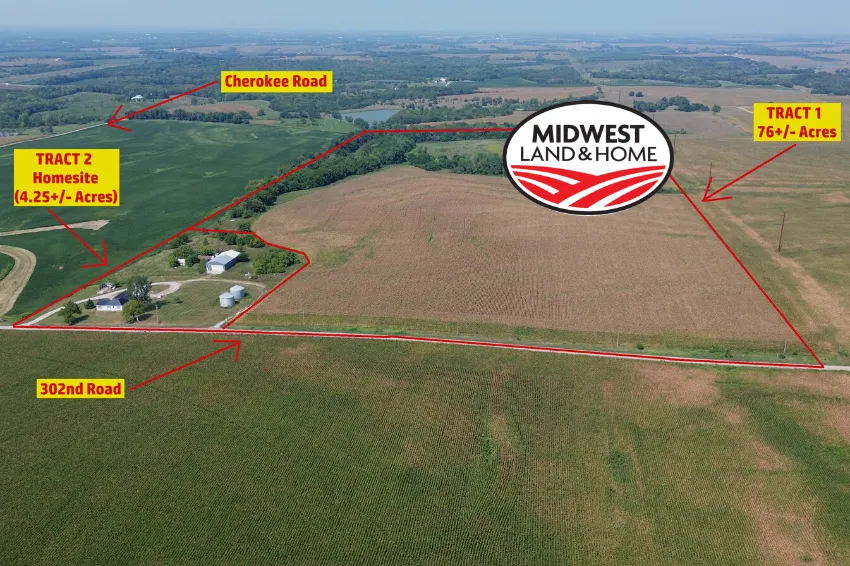 Terms & Possession: 10% down day of the sale, balance due at closing on or before December 6, 2023. Buyer to take possession of Tracts 1 & 2 at closing subject to tenants rights on Tract 1, Tenancy on Tract 1 terminates at conclusion of fall harvest. Sellers to pay 2023 property taxes. Title insurance, escrow and closing costs to be split equally between buyer and seller. Property to be sold AS-IS, WHERE-IS. All inspections should be made prior to the day of the auction. Sellers interest in mineral rights to transfer with the sale. This is a cash sale and is not subject to financing, appraisal, or inspection. Midwest Land and Home is acting as a Sellers Agent and represents the sellers interest. All information has come from reliable sources; however, potential buyers are encouraged to verify all information independently. Seller expressly disclaims any liability for errors, omissions, or changes regarding any information provided for these sales. Potential purchasers are strongly urged to rely solely upon their own inspections and opinions in preparing to purchase property and are expressly advised to not rely on any representations made by the seller or their agents. Michael W. Riley, Attorney at Law, LLC will prepare purchase contracts and Finley Miller Title Service will act as escrow, title & closing agent. Announcements made the day of sale will take precedence over all other information. Aerials and images are representations and are not guaranteed to be actual property lines.