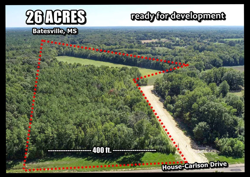 Invest now. Profit later. Prime location just north of beautiful Pine Lodge Road and only a 4-minute drive to I-55. This tract consists of hardwoods and farm ground and is in a perfect spot for residential development. Commercial property is only half a mile away, so future potential is there, too, with high visibility directly from I-55. Shopping and dining are nearby, and it's a short drive to Ole Miss and also convenient to two large area lakes, Enid and Sardis. The City of Batesville owns the road bordering the property line, but the road is solely designated to that property, and the owner has full access to use etc. All utilities available including fiber optic internet.
