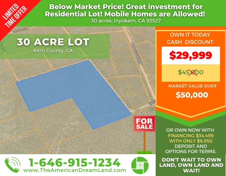 This 30-acre lot that is located in Inyokern, CA. Perfect for making a long-term investment or building your dream home or mobile homes! lot can be subdivided!