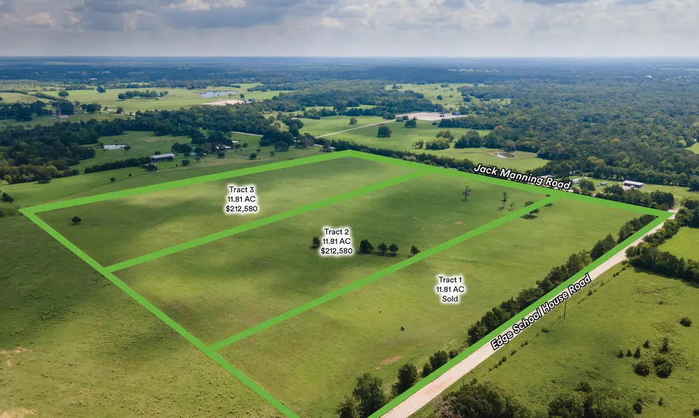 Research Parcel InformationProperty is located in Hearne Texas at the corner of Edge School House Road and Jack Manning Road. Property is divided into 3 separate tracts that each have 11.81 acres.