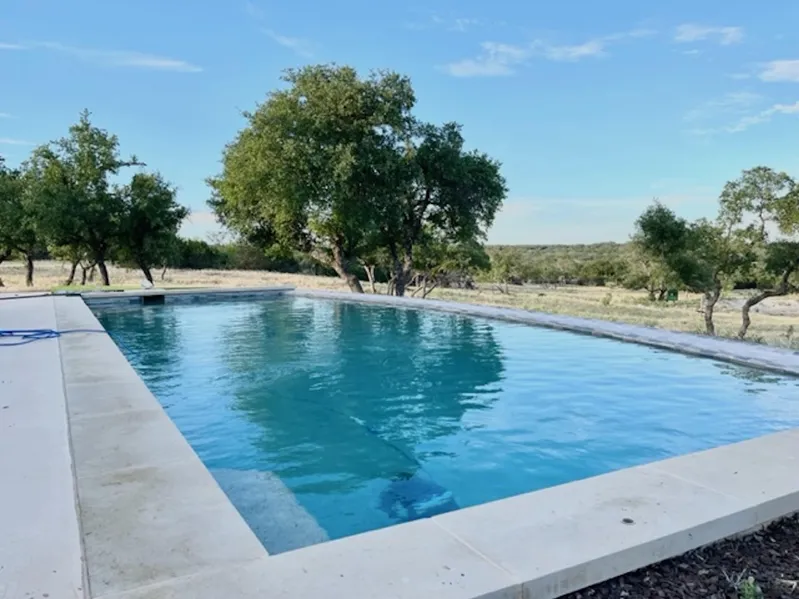 Improvements: The Oak View Ranch offers 60 acres with a custom 2,044 square foot 3 bedroom 2 bath home with a study, 2 car attached garage, big screened-in porch overlooking a pool and the beautiful Texas Hill Country. Kitchen has a commercial grade stove with propane heating. Kitchen has stainless steel appliances and slate counter tops. The easement road in the development is paved from the entry gate to the property. There is an all-weather caliche road from the paved easement to the home. An automatic entry gate ensures security and privacy for the ranch. This property has a pond that is stocked with fish. Most of the furniture, appliances, and all the feeders and blinds convey with the sale. The property is under a wildlife exemption for low property taxes.