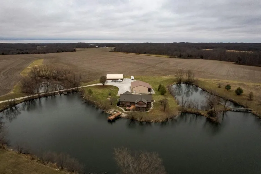 We are proud to present this incredible custom built home sitting on a beautiful wrap around lake. The approximate 2,100 sq. ft. 3 bedroom, 2 bath home is has an amazing lodge feel to it & would make a great vacation home or full time residence. As you can see from the photos, the house is full of high end finishings and offers everything you could want in a home! Also included is a nice metal building with concrete floors and electric offering a great place to store your equipment. Also included is a nice hoop building offering additional storage for larger equipment.