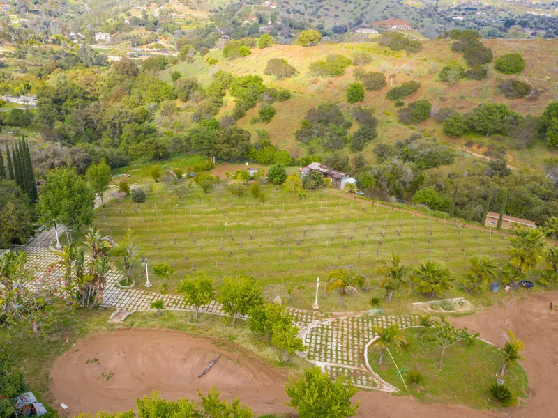A beautiful botanical paradise boasting valley and mountain views, this 9.46+/- acres offers the potential for a private, serene backdrop to your custom view homesite and hobby farm. Extensively planted with a variety of vegetation and edible fruits, such as avocado, grapefruit, kumquat, orange, persimmon, plum, pomegranate, peach, apple, Mulberry and more. Favorable zoning will allow for many agricultural endeavors. Enjoy expansive patios with planter beds, water feature, beginnings of an outdoor entertaining area and handmade stone walkways leading to many private and beautiful spaces designed for the outdoor living experience. Varied topography creates natural boundaries between neighbors ensuring future viewshed privacy. Substantial infrastructure in place with gated entrance, underground utilities, a 1 water service supplying an irrigation system and septic approval (needs updating).