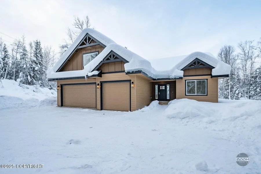 Open concept with modern touches, 12' ceilings in the great room featuring a panoramic wall of windows, windmill ceiling fan and LVP flooring. Large kitchen island with composite sink, upgraded Kohler plumbing fixtures, quartz counters, Bosch appliances, and a five burner gas range. Custom European style cabinets with 42'' uppers, all full extension & soft closing. Coffered ceilings in the master bedroom, WIC, tile shower surround & dual lavs. Spacious family room above the garage could be an additional bedroom or office/den. Trex decking with a 10X12 rear deck, oversized 3 garage with upgraded industrial garage doors! Estimated date of completion, 7/8 months from executed contract. Buyer to select all interior options and upgrades. Great commute location with close access to the Glenn Highway AND NO CC&R's! All photos are from a similar home recently completed.