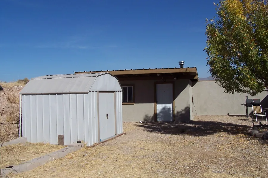 Great Get Away Property. 1 Cottage is the Living/Dining area and shower/washer, and 1 Cottage is the Master bedroom/bath with a court yard in between. Concrete block construction, metal roof, solar power, well and septic beautifully landscaped. Fenced and fruit and nut trees. Each cottage is 200 square feet. This is a must see property. Tons of storage and views.