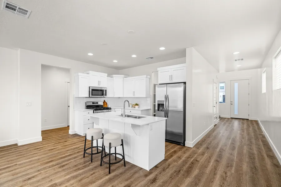 4 bed with Primary on the main level, 2.5 bath home with a 2-car garage in the brand-new Desert Reflection community by Salisbury Homes. Features include EVP flooring in main living areas and bathrooms, upgraded carpet in bedrooms, quartz countertops throughout, stainless steel gas appliances (fridge not included), modern cabinets, and kitchen backsplash. Community park, trails, and amenities nearby. NOTE: Interior and exterior finishes are predetermined and may change. Photos are examples of the finishes are also subject to change. TAKE ADVANTAGE OF A $7,000 LENDER INCENTIVE AND GET A LOWER RATE! Buyer/agent to verify all info.