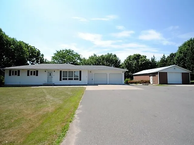 LOCATION! LOCATION! LOCATION! Less than 1.5 miles from city limits, situated on almost 6 acres, sits this sprawling 3 BR 2 BA ranch home! U-shaped kitchen includes all newer stainless steel appliances, plenty of room for storage, a place for mini home office and an eat-in peninsula. Dinette also opens to large deck with beautiful views of rolling lawn. Three bedrooms are located on the main along with an oversized full bath with dual vanity. Lower level is the place to be! Walk out basement is ideal for entertaining with the private yard. Rec room has built in bar and hot tub! Additional room in basement can be used as a den or for hobbies. Full bathroom also on the lower level. Attached garage is heated and insulated. Detached 30x48 shop is partially heated and has a workshop. Circle drive makes coming and going a breeze with your trailer, boat. etc. Opportunity is knocking! Call today for your personal showing!