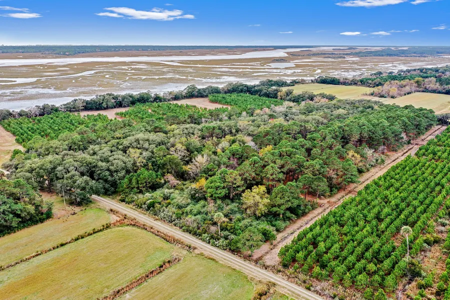 Keeping with the long-standing traditions of this rural sea island community, the parcel contains 14 acres upland and includes a generous open field ideal for agriculture, horse pasture and/or a marshfront residence. A stand of planted pines, beautiful mixed hardwood forest adorned with stately live oaks and native palmetto trees ring the property. A dock permit with tidal creek access has been submitted for this parcel which will provide future owners exclusive access to some of the best inshore fishing and boating in the Lowcountry. A new road system is in place and a 4-bedroom septic permit is in hand.