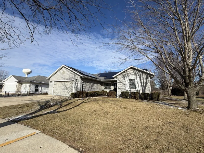 Picture-perfect curb appeal and serene water views awaits in Mahomet's sought-after Sandy Ridge subdivision! This beautifully finished 3 bedroom, 2 bath ranch offers the ideal blend of style, comfort, and functionality. The spacious open-concept living room features 9 foot ceilings, rich hardwood floors, abundant natural light, and a cozy fireplace, all flowing seamlessly into a relaxing sunroom with both heat and air - perfect for year-round enjoyment. The large kitchen and dining area is ideal for entertaining, showcasing stainless steel appliances, warm oak cabinetry, granite countertops, a center island, and a generous pantry for excellent storage. The desirable split-bedroom floor plan provides privacy, with a bright and airy primary suite offering a private bath complete with double sinks, a jetted tub, a beautifully tiled shower, and a walk-in closet. Two additional bedrooms feature great natural light and ample closet space and share a full hall bath. A convenient utility room with laundry sink adds everyday ease. Outside, enjoy summer cookouts on the patio, relax in the spacious shaded yard, or take a short stroll to the neighborhood pond for a little fishing. This move-in-ready home truly has it all - don't miss your chance to make it yours!
