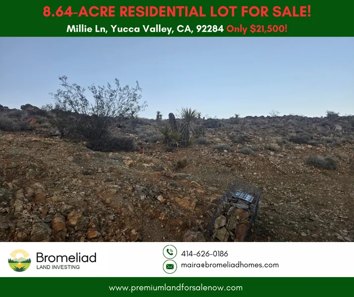 This 8.64-acre desert lot, situated just 7 miles outside Landers, offers privacy, expansive open space, and potential views. Whether youre looking for a recreational retreat, an off-grid getaway, or a potential future build site, this spacious parcel gives you room to breathe, explore, and enjoy the rugged beauty of the Mojave Desert. Per the San Bernardino County Building and Safety Department, mobile homes and manufactured homes are allowed (buyer to verify). There might be Joshua Trees on the property, which are protected (buyer to verify). At $21,500, this property offers incredible value for nearly 9 acres of land in one of Californias fastest-growing desert marketsan excellent long-term investment.