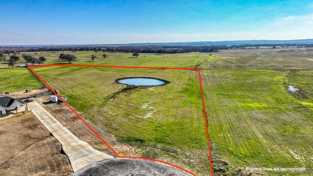 This beautiful 5 acre homesite features a pond & open spaces on a Cul-De-Sac for your dream property. NO CITY TAXES & NO WATER BILL! 5 acre ranchette in High Meadows Ranch with 2000sqft minimum home. Guest house or second homes allowed for multi-generational living. Horses, cattle & small farm animals encouraged. Ask about Veteran Land Board Loans or low down conventional options. Invest now & build later with no time limit to build. Own a piece of Parker County in the rural part of Texas with creature comforts only 25 min away & downtown Fort Worth less than a hour. Restricted to protect your investment, yet relaxed giving you freedom on your own land. Txt keyword LOTS30 to 88000 for Plat & Restrictions. Dont wait to buy land, buy land & wait! Large dirt mound in front of the pond will be removed prior to closing.