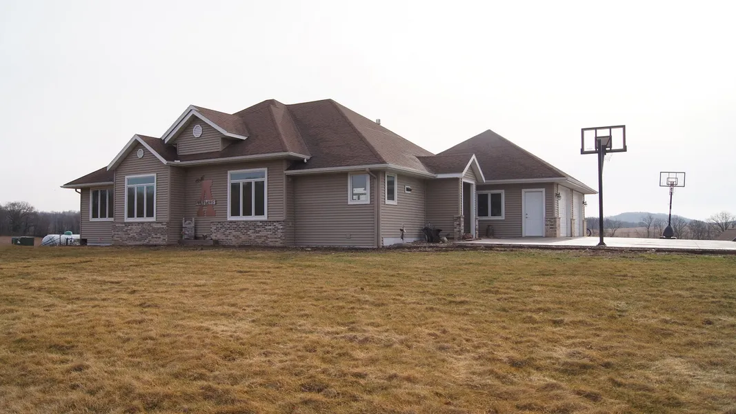 Quiet country living. One level custom built ranch home with all living facilities on one level. Maple floors, birch cabinets and plenty of other custom built cabinets and accessories. Walk out basement to stamped concrete patio and large backyard playground with fire pit. Very large bar/rec room built under garage with large wet bar. In-floor heat in basement. Garage is finished and heated. Cropland of 30 acres is rented out for $2400/yr. Lake Eau Galle very close by for boating and fishing. Bike trail also close by in Downsville. Home can be purchased with 37.26 acres or any lesser acreage that makes sense.