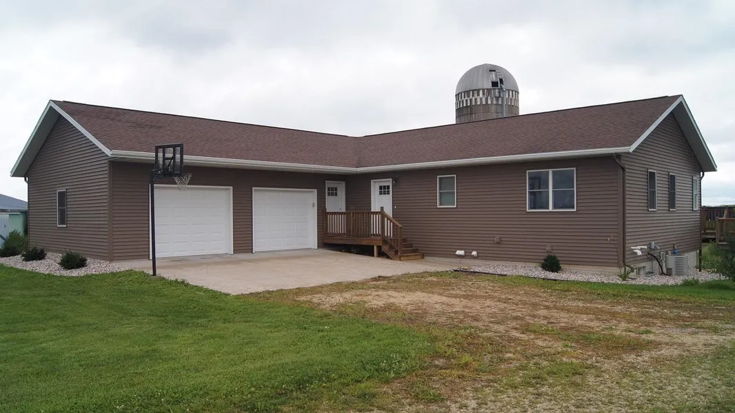 Beautiful newer 4 BR, 3 BA rural home on 20 acres located just outside of Plum City. Home has 2 car attached garage, main level laundry, new landscaping, and in-floor heat in garage and basement. Property also has a pole building, machine shed and 200 ft. dairy barn. This property is a must see! Age of home is estimated.