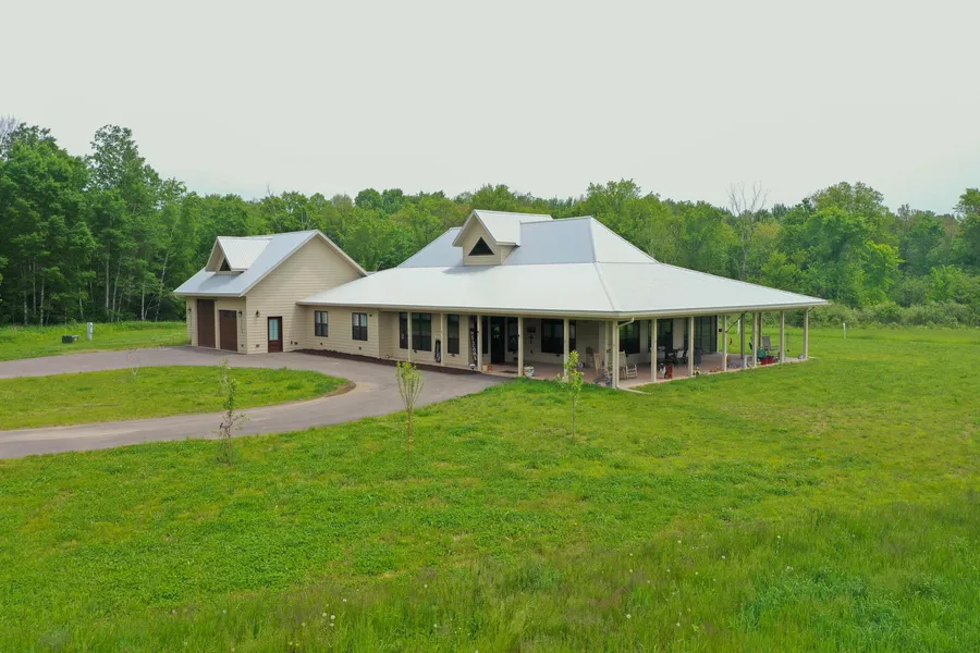 PRICED TO SELL! Truly immaculate 3+ bedroom, 2.5 bath country home built in 2023 on 15 acres of land located southeast of Rib Lake. A long blacktop driveway leads to this impressive home. Custom high end hickory kitchen with granite countertops, farmhouse sink and breakfast bar. Living room with tongue and groove cathedral ceilings and a pellet stove. Primary suite with access to screen porch, large walk-in closet and en suite bathroom. The en suite bathroom features double sinks with solid copper bowls, garden tub and large tile shower. Indoor swim spa for lap swimming or relaxing in the hot tub. Dedicated home office with glass pocket doors, built-in shelving and double desk. Oversized attached 2 car garage with in-floor heat. Every room is filled with natural light and great views. The expansive wraparound covered porch provides additional outdoor living space. Beautiful country setting with additional land available. The refrigerator, cooktop, smart oven, wine cooler, washer, dryer, water softener, window treatments and television sets are included in the sale price.