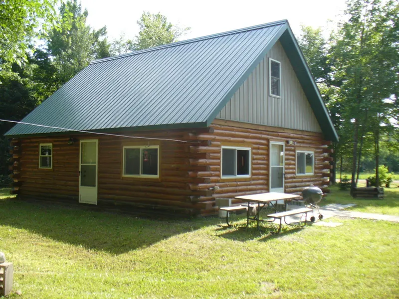 Like new 1+ bedroom, 1 bath log cabin on +/-38.34 wooded acres with the Wood Creek flowing through the property. The cabin is on a concrete slab with in-floor radiant heat. Open concept design with a little finishing work to complete. Upper level is insulated and ready to finish into additional bedroom space. Private location at the end of a dead end road. Nice yard with storage sheds and a small workshop. Excellent parcel of hunting ground with mixed hard and soft woods and good wildlife habitat. The Wood Creek, trout stream, flows through the property. The back of the property has a direct border with the County Forest.