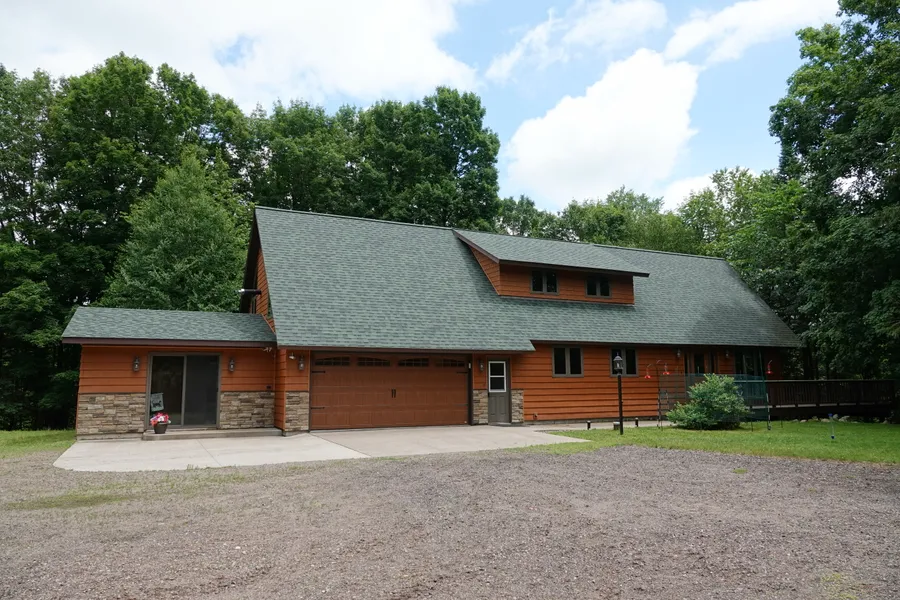 This beautiful secluded 3 bedroom, 2 1/2 bath country home is located on 31+ wooded acres. It features cedar walls, cathedral ceilings, red elm flooring, wall to ceiling windows and a deck. It has a full finished walk-out lower level and an attached heated 2 car garage and a hot tub room.