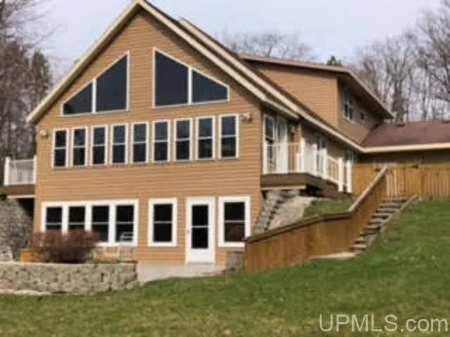 LAKE MICHIGAN WATERFRONT HOME FOR SALE - This property is located in Garden Township, in Delta County, in the Upper Peninsula of Michigan. Delta County is a Lake Michigan coastal paradise. It has 211 miles of varied shoreline, which is the most of any county in the continental U.S. The 3.1 Acre parcel being offered for sale has 254+/- Feet of westward facing lake frontage with amazing sunset views on the beautiful Garden Peninsula. From the Big Bay de Noc frontage of this parcel you can boat, dive, swim, kayak or canoe. You can fish off the shore for Lake Michigan's Salmon, Trout, Walleye, and Pike. A private tree lined paved driveway takes you to a paved parking area of the home. A walk to the side of the building brings you to a raised open deck and two entries. The first opens into the Great Room, and the second opens into the beautiful enclosed All-Season sun room. The Great Room is highlighted by wood and ceramic tile flooring, warm wood interior walls and a high cathedral ceiling which adds vertical space to the beautiful room. Lighting and Ceiling Fans illuminate and cool the area below. A window wall system facing the lake side of the room rises to the peak of the ceiling and has two 9 ft sliding doors leading to the All-Season Room. The high vaulted ceiling continues into the Sun room which features a slate floor, and windows along three sides that provide views of the lake and yard below. A masonry and stoneFireplace with Lp gas insert, and raised hearth runs along one side of the Great Room, and along the other is a formal Dining Area. A sleek and modern L-Shaped Kitchen has polished stone counter tops and high quality cabinetry and appliances. An Island provides additional casual dining space. A central hallway is flanked on one side by a Full Bath, and on the other side is a large Laundry Room, with an exterior door that leads to the attached 2+ Car Garage. Two bedrooms, one with a walk-in closet are located at the end of thehallway. An open log Stairway from the Living Area of the Great Room takes you to the Second Floor. Here you will find a 12x14 Sitting Room/Office which overlooks the room below. Also on this level is a Bedroom Suite. It has an 18x20 Bedroom with Walk-In Closet. A Full Bath with separate shower and Jacuzzi corner bath, and two vanities completes this suite. A Stairway off the Kitchen leads you to the Lower Level. Here you will find a large Recreation Room complete with a free-standing gas stove, and a bar with custom live edge wood slab top. Off the Rec Room is a fourth Bedroom, full Bath, and Mechanical Room. Patio doors lead you out to an enclosed Hot tub room, then out onto a colored stamped concrete patio with fire pit. Additional buildings on the property include a 24x26 Detached Garage, and a Heat-mor Outdoor Wood Burning Furnace. In addition, there is a new automatic stand by 20KW Kohler propane Generator. There are few beautiful Lake Michigan homes available with all of these amenities. If you are seeking a luxury waterfront home call today to schedule your private tour of this U.P. Treasure! AREA POINTS OF INTEREST: The Garden Peninsula is a 22 mile long peninsula (finger of land) that extends southwestward into Lake Michigan towards Wisconsin's Door County Peninsula. The peninsula is bordered by Lake Michigan on the east, and by Big Bay de Noc on the west. Bays de Noc shoreline is the “Walleye Capital of the World” in Delta County. Anglers converge for open-water and ice fishing and ESPN for its B.A.S.S. Elite Series Professional bass fishing tournament. Less than a quarter mile away is access to thousands of acres of the Lake Superior State Forest Lands (Some older maps call this area the Bay de Noc State Forest). Whitetail deer, black bear, grouse and other small game live in these forests. MLS# 1126334
