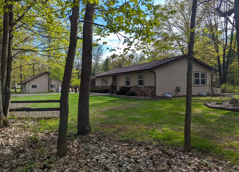 Absolutely impeccable 3 bedroom 2.5 bath ranch style home nestle on 4 acres of rolling hardwoods within minutes of the City of Phillips. The main floor of this quality home has custom oak kitchen cabinets, Corian countertops, large living room with built in shelves, Anderson Windows and main floor laundry. There is a large family room in the lower level along with a bonus room and hobby room perfect for a man cave! The garage and shop space is unbelievable, to start with there is an attached heated 1 car garage. A finished 40x32 detached with concrete floors and drains, heated by an LP Modine heater and has ample attic storage. There is also a 50x50 pole building with concrete floors, shop area, woodstove and overhead storage. An additional heated workshop and carport to provide all the space you need. The landscaped yard is stunning and there is an open sun deck to sit back and enjoy the wildlife that frequent the property. There are no gravel surfaces, the entire drive-way and all parking areas are black top. The home is equipped with efficient hydronic heat along with duct work and central air. This location is hard to beat, only minutes from Phillips on an ATV/UTV friendly road. Solberg Lake is a short drive away for great fishing, swimming and dinning at one of the lakeside establishments. Amazing property that has been extremely well maintained to say the very least!