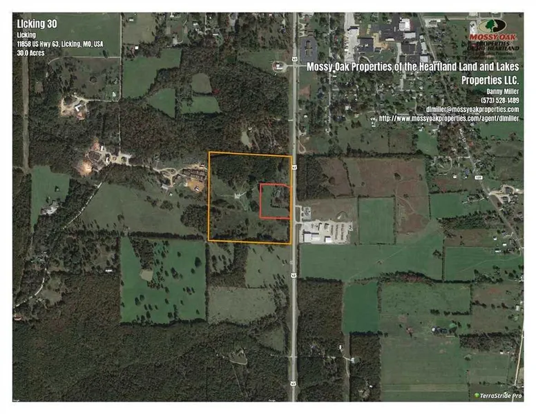 Nice building sites on this thirty one acres m/l that borders the city limits of Licking Missouri. Highway 63 frontage on the southern border of Licking, this property presents many opportunities for a residential site, commercial business, or whatever you have in mind. Large stand of shortleaf pine, two ponds and some oak timber. Electricity is available on the property. Contact Danny Miller with Missouri Land Company for more information.