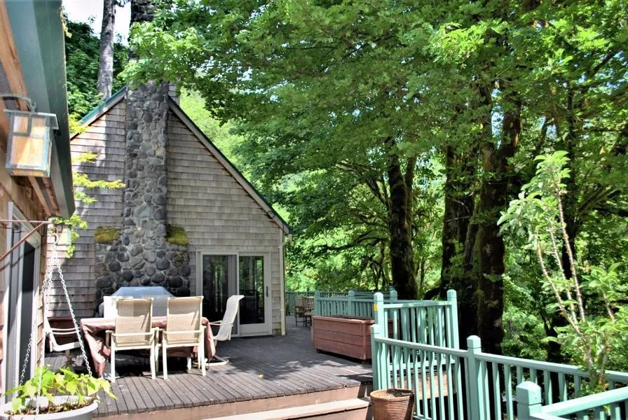 The Salmonberry Lodge, is comprised of 55 acres of timberland and riverfront property at the confluence of the famed Salmonberry and Nehalem Rivers. Improvements include a custom designed 2,384 sqft 4 bed/4.5 bath house built in 1994 with attached 2 car garage, a caretakers quarters, 1,300 sqft of decking overlooking the Salmonberry River, trails to a hot tub viewing deck, meditation pond, a riverfront gazebo, propane fire pit, and impeccable, mature landscaping along the Salmonberry River. In addition, the property has multiple springs originating on the property, Hatchery Creek, which enters the Salmonberry on the property, and a micro-hydro system from Hatchery Creek that produces all of the power needed for the house. The Lodge is connected to the local PUD, but the property can be run without local power, if desired.