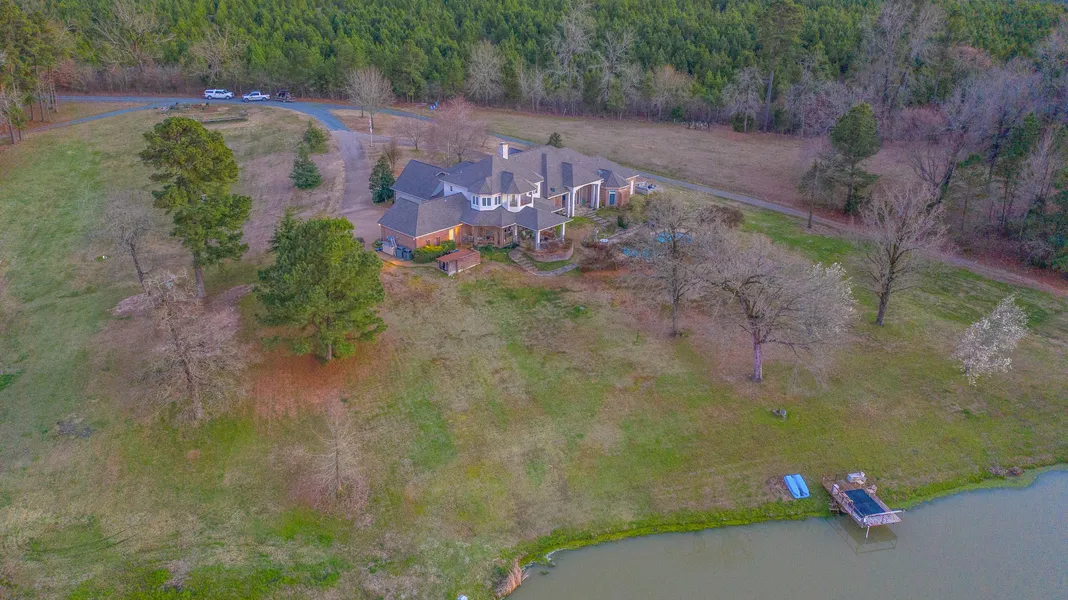 Driving through the gated entry finds a perfectly situated custom home with an amazing hillside view, that overlooks the entire property. With three creeks, a 45-acre hay meadow and some of the most beautiful managed hardwood timber you will ever see, there is something for everyone to enjoy on this property. The owner has taken special care and time to keep the woods in a park-like condition and has multiple trails and bridges in place. No detail was left untouched in this 4/3.5 6000 sf. home, and the trim level is unmatched. Interior amenities include oversized master w/fireplace, safe room, executive wood paneled office, formal dining, theater with bar, and custom kitchen with top of the line appliances, just to name a few. There is a swimming pool with hot tub, a 30x100 workshop with 3 bay doors, and a stocked pond with a dock and an electric clay pigeon tower. There is also a 2/1.5 guest house, that has a log cabin type interior on the property as well. Details are indescribable for this one and are listed below under property details. It is a lengthy list because it truly has it all, this is a must-see property that you have to see to appreciate!