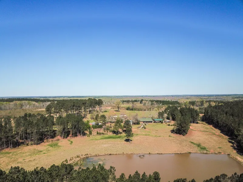 In the center of the property overlooking a well maintained field and 3 acre pond is a log cabin with several outbuildings and gardens. The new huge barn has large porches and entertaining areas. The 1,700sqft cabin is 4 bedrooms with 2 baths and a large basement. There are two screened porches which run the full length of the home. There is plenty of room for guests with an additional bunk house with lofts and two large bedrooms and one bathroom. The property is totally sustainable on its own. Redundant power supplies, well water, 3 sources of heat, tornado shelter, heated greenhouse, and large fenced garden with blue berries, fruit trees, and long vines of muscadines and scuppernongs. Three 500 gallon propane tanks and three 650 gallon fuel tanks with diesel, gas, and kerosene. You can even raise chickens with the storage building that has an integrated chicken coop.