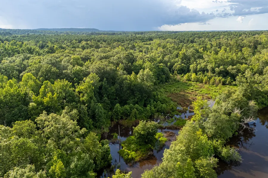 Little White Oak Creek runs diagonally across the southern half of the property, eventually draining into a natural slough in the southeastern cornerjust north of the road frontage. This low-lying area could potentially be enhanced into a more permanent water feature. The topography elsewhere on the property also shows potential for additional pond construction.