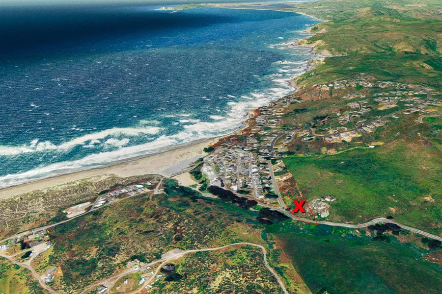 Four blocks from a sandy beach, here is a perfect spot for your new coastal home! Gentle upslope terrain. Site plan shows where you might place your driveway, home, and guest house. Seller says that the main house can be up to 3250 square feet and the guest house can be up to 750 square feet, buyer to verify. Hear the seagulls and smell the ocean breezes. Easy access to San Francisco only 80 minutes away. Why do you live in the City when you could be living here?