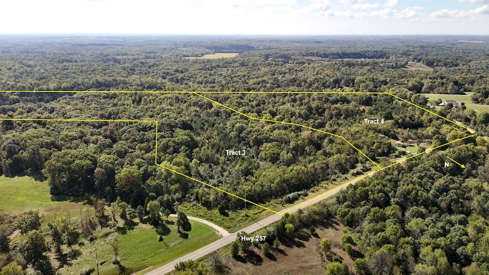 Welcome to Tract 3, a captivating property offering over 500 feet of road frontage along State Road 257. This tract features an ideal build site overlooking a charming, picturesque pond, providing a serene setting for your dream home. One of the standout features of Tract 3 is its long, flat top ridge, which extends back to a 5-acre pit renowned for excellent fishing. Whether you're an avid angler or simply enjoy relaxing by the water, this private fishing spot is a rare gem. Approximately 17 acres of the property are enrolled in Classified Forest, showcasing mature hardwood timber that adds natural beauty and marketable value. The forested areas enhance the property's tranquil atmosphere and offer opportunities for outdoor enjoyment. Situated in the southeast corner of Pike County, Indiana, Tract 3 is ideally positioned between Sugar Ridge Fish & Wildlife Area, Pike State Forestry, and Patoka River National Wildlife Refuge. This serene location provides peace and quiet while still being close to modern amenities. Recreational opportunities abound. In addition to fishing, the property's rich natural environment is perfect for hiking, wildlife watching, and morel mushroom hunting. The land is teeming with deer, turkey, and other wildlife, making it a haven for nature enthusiasts. Conveniently located just a few minutes' drive from I-69 or I-64, and with Interlake Off-Road Park and Lynnville Park nearby, Tract 3 offers a unique blend of natural beauty and recreational potential. Embrace the tranquility and charm of this exceptional property and make it your own.Agent Remarks:Most of the buildable areas on the property have been surface mined; following current building standards is advised.