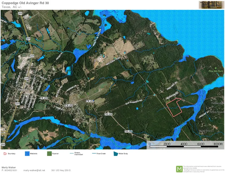 Research Parcel InformationFrom Ore City go east on FM 450, turn left on Old Avinger Road. Sign is on the right side.