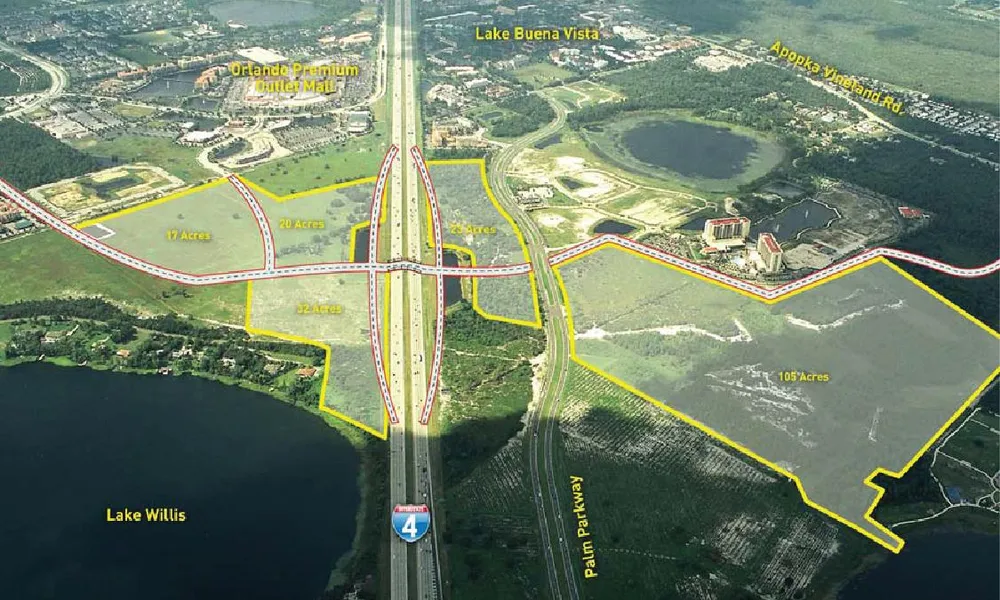 The 198 acre property straddles both sides of I-4 with traffic counts of 165,000 vehicles per day.