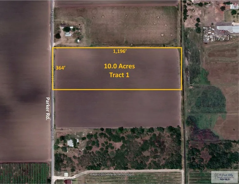 Very nice tract of irrigated, agriculture land just 1.7 mile north of Expressway 83 on Parker Rd. This tract has access to electricity but not to city water. It does have access to irrigation water to flood irrigate the land. If a home is constructed on this property the buyer will be responsible for adding a water well and septic system to the property before the county will allow you to build a residence. This tract of land can be used for a homesite without further subdividing. There are two 10.0 acre tracts of land being sold side-by-side and they can be sold individually or together. This is the northern 10 acre of the 20 acres and it is labeled by the seller as Tract 1.