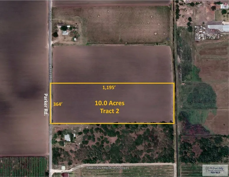Very nice tract of irrigated, agriculture land just 1.7 mile north of Expressway 83 on Parker Rd. This tract has access to electricity but not to city water. It does have access to irrigation water to flood irrigate the land. If a home is constructed on this property the buyer will be responsible for adding a water well and septic system to the property before the county will allow you to build a residence. This tract of land can be used for a homesite without further subdividing. There are two, 10.0 acre tracts side-by-side and they can be sold together or separately. This 10 Acre tract is the southern half of the 20 acre tract owned by the sellers and they have labeled this as Tract 2.