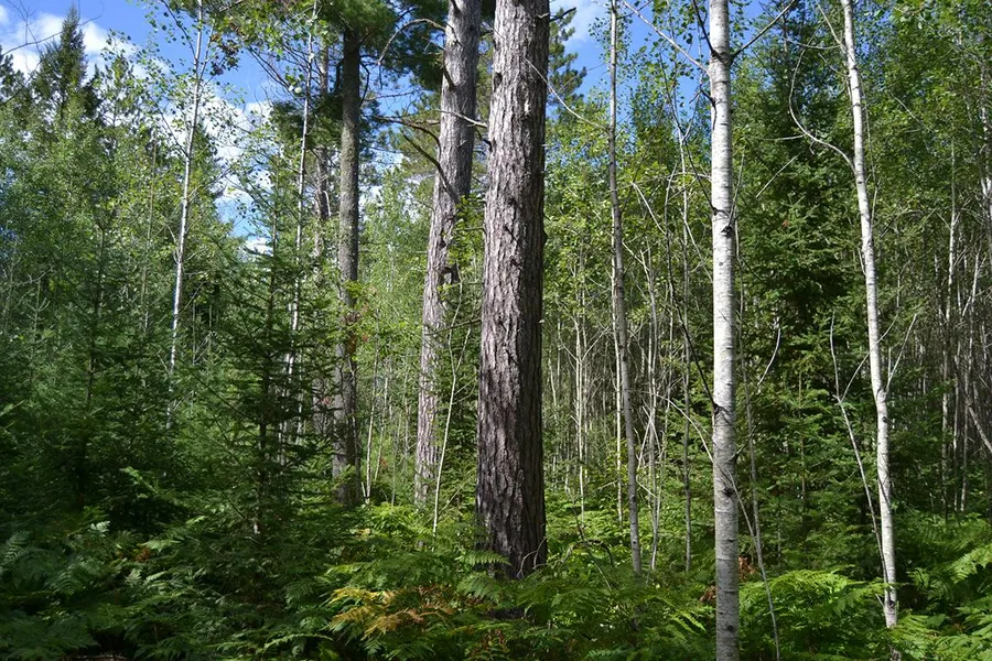 This 9.5 acre wooded Wisconsin property for sale adjoins thousands of acres of Nicolet National Forest and is located just down the road from several full recreational lakes! This is ideal land for your campsite or cottage with huge red and white pines and hardwoods; the trees on this large acreage property are magnificent.