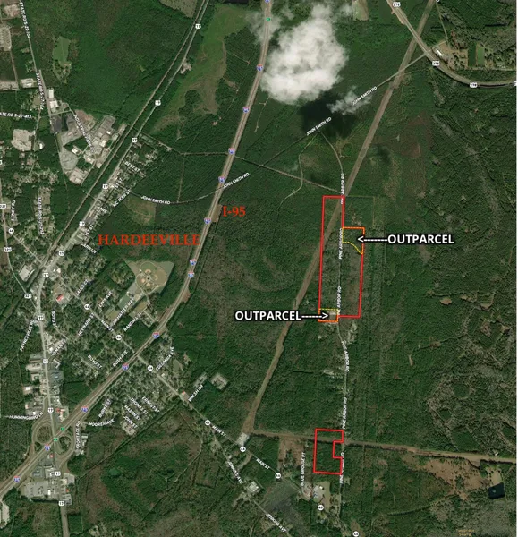 Great opportunity for several family compounds or a small development. Ideal location in fast growing Hardeeville, these 3 large tracts are located along beautiful Pine Arbor Road totaling approximately 91 +/- acres. Just minutes from I-95 and Hwy 278 between Hwy 46 and John Smith Rd and centrally located between Savannah, Bluffton and Hilton Head.